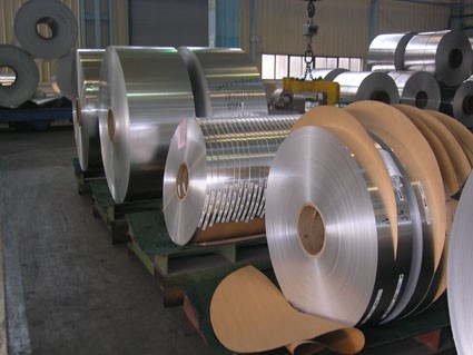 鋁帶(Aluminium strip/Aluminum strip)的原料是純鋁或鋁合金鑄軋鋁卷、熱軋鋁卷,經(jīng)冷軋機(jī)軋制為不同厚度、寬度的薄板鋁卷,再根據(jù)用途,經(jīng)縱剪機(jī)縱向分切為不同寬度的鋁帶。
